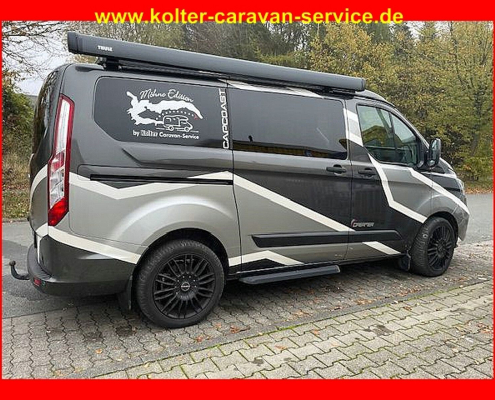 Motor / Chassis: Ford Tourneo Custom 2,0 l Eco Blue Leistung: 125 kW / 170 PS Getriebe: Automatik Kilometerstand: 3500 km zul. Gesamtgewicht: 3200 kg Bett(en): Schlafdach Sitzgruppe: Mittelsitzgruppe Polster: Java Holzdekor: UrbanSONDERAUSSTATTUNG:…